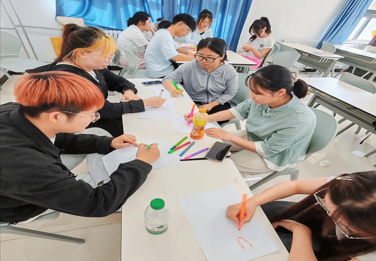 培训过程中,高洁围绕正念呼吸训练,通过心声传递、绘制生命线、感悟生命线等环节,引导同学们根据自身呼气和吸气的长短变化,充分发挥想象,描绘出呼吸的长短、形态、大小和颜色,专注于每一次深呼吸,感受气息在体内的流动,用心去探索内心与呼吸的关联,学会调节情绪,缓解焦虑心理。随后,大家根据自己所画出的生命线,认真书写下内心的独特感受,并分享自己在正念呼吸过程中的观察和感受,互相倾听、互相支持。