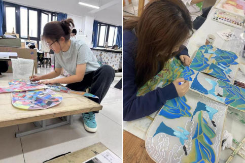 活动的第一个流程是风筝绘制。同学们以“自我”为主题,放飞想象力,在空白的风筝上画出内容形式各异的图案内容,表达对青春的理解。绘制过程中自由分组合作,加强了组内交流合作,同学们对内容各抒己见畅所欲言,绘画时互帮互助,交到了新朋友,获得了愉快的绘画体验。
