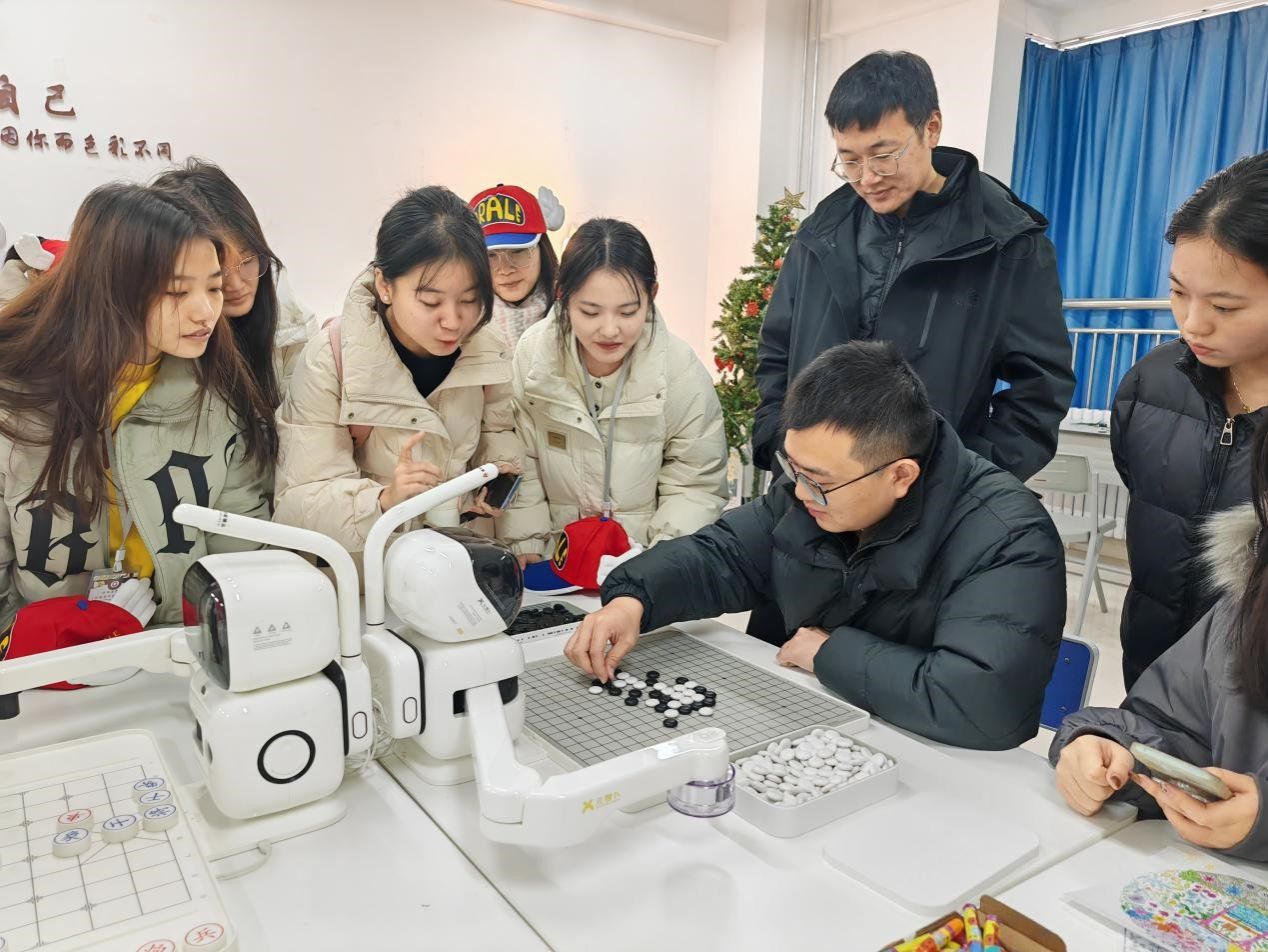开放周期间,在智能心理咨询区,学生们体验了AI心理咨询服务—心吧智能评估机器人。通过与智能机器人进行对话,及AI指尖仪测量,与学生身体和自我情绪联结,学习如何利用AI工具进行自我心理调适和情绪管理。通过与AI下棋机器人竞技,与自我的思维、认知联结,体验感受科技的力量,享受与AI互动带来的乐趣。在艺术疗愈区,学生们用绘画、音乐等艺术形式表达内心的情感,释放压力,让学生们在轻松愉快的氛围中体验到心理健康的重要性,促进学生之间的交流和互动。