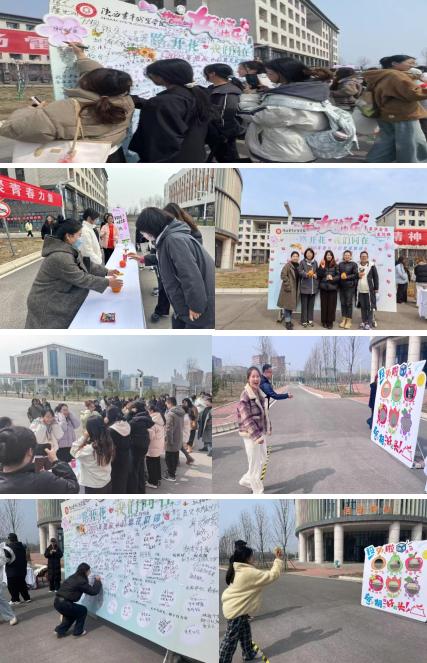 3月7日,为庆祝第114个“三八”国际劳动妇女节,校团委组织开展系列祝福活动。副校长韩凯军、团委书记王珊参加,宣传部、学工部、教务处、各系及400余名女教工与学生参加。