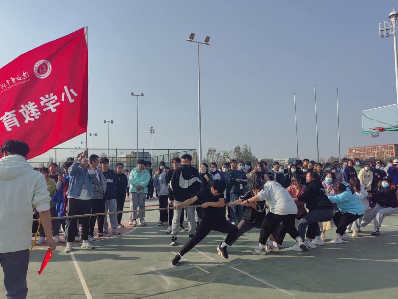 11月19日下午,小学教育系在长安校区运动场举办“凝心聚力、‘绳’彩飞扬”班级拔河比赛,小学教育专业2021级14个班参加比赛,拔河比赛由小学教育系团工委组织,2021级辅导员余逸兴担任主裁判。