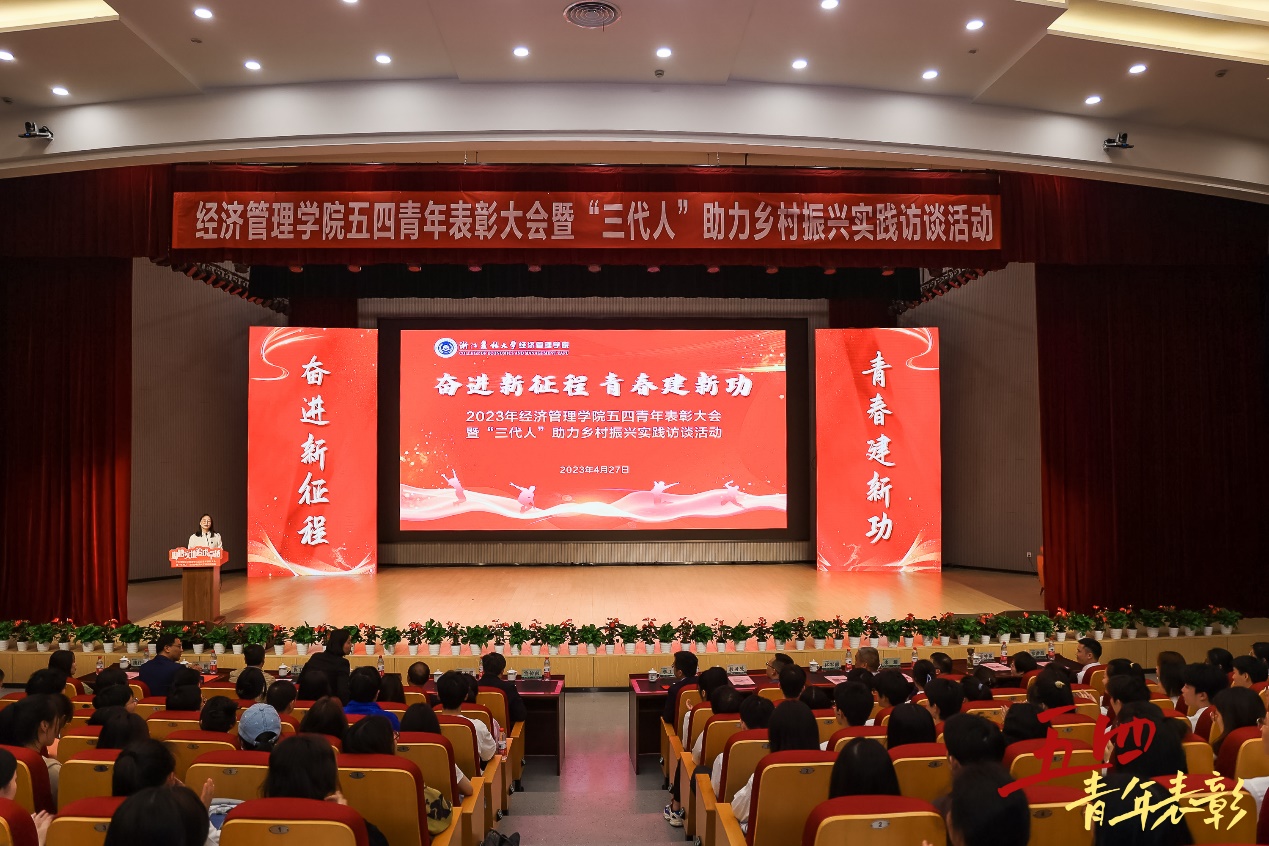 永利官网五四青年表彰大会暨“三代人”助力乡村振兴实践访谈活动顺利举行 2023年是全面贯彻落实党的二十大精神的开局之年。4月27日下午,永利官网以学习贯彻习近平新时代中国特色社会主义思想主题教育为契机,在衣锦报告厅举行永利集团304官网永利集团304官网五四青年表彰大会暨“三代人”助力乡村振兴实践访谈活动,集中展现经管师生昂扬向上、奋发有为的精神风貌,为奋进新征程凝心聚力。校宣传部、学工部、研工部、教务处、保卫处、体军部、团委等职能部门出席会议,并为优秀师生颁奖。整场活动在《书写青...